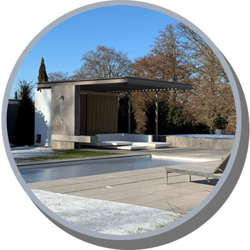 Für die Seiten bieten wir Ihnen weitere Beschattungsmöglichkeiten als Sonnen- bzw. Sichtschutz wie Markisen oder Raffstoren.